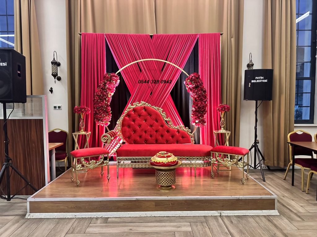- Klasik Osmanlı Konsepti: Kırmızı ve altın sarısı detaylarla bezenmiş, kadife dokulu tahtlar.