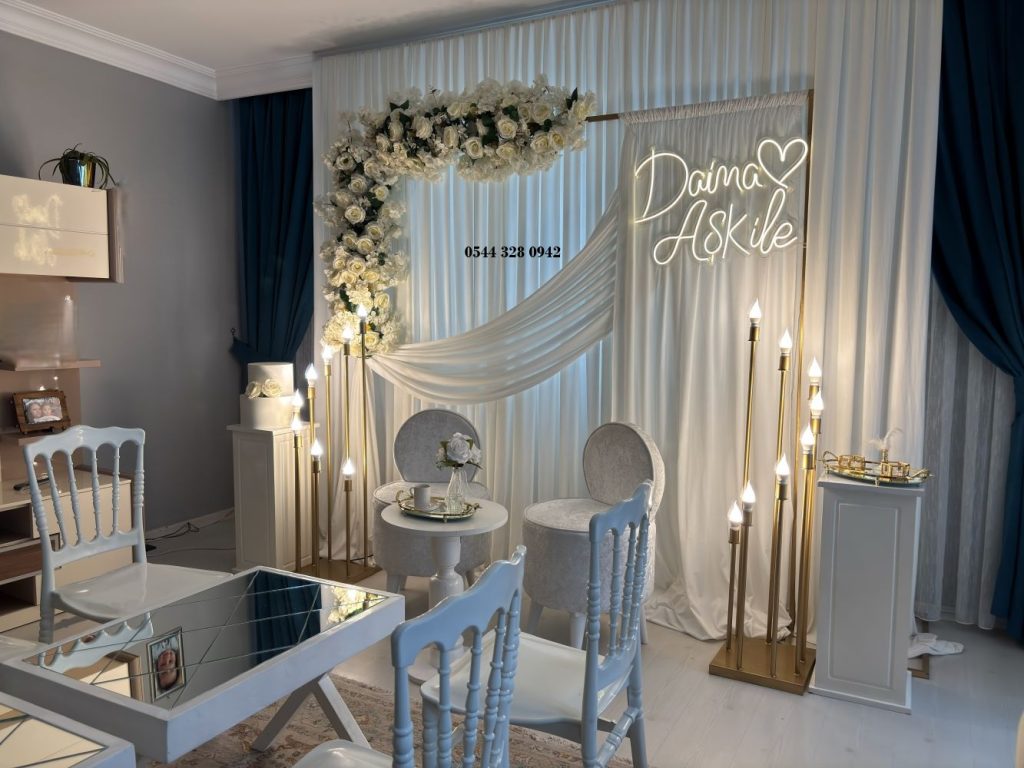 Evliliğe giden ilk adımda, samimi ve şık bir atmosfer yaratmak isteyen çiftler için İstanbul genelinde profesyonel çözümler sunmaya devam ediyoruz. Özellikle ev ortamında gerçekleştirilen söz ve nişan törenlerinde, mekanın ruhuna uygun dekorasyonlar seçmek büyük bir önem taşımaktadır.